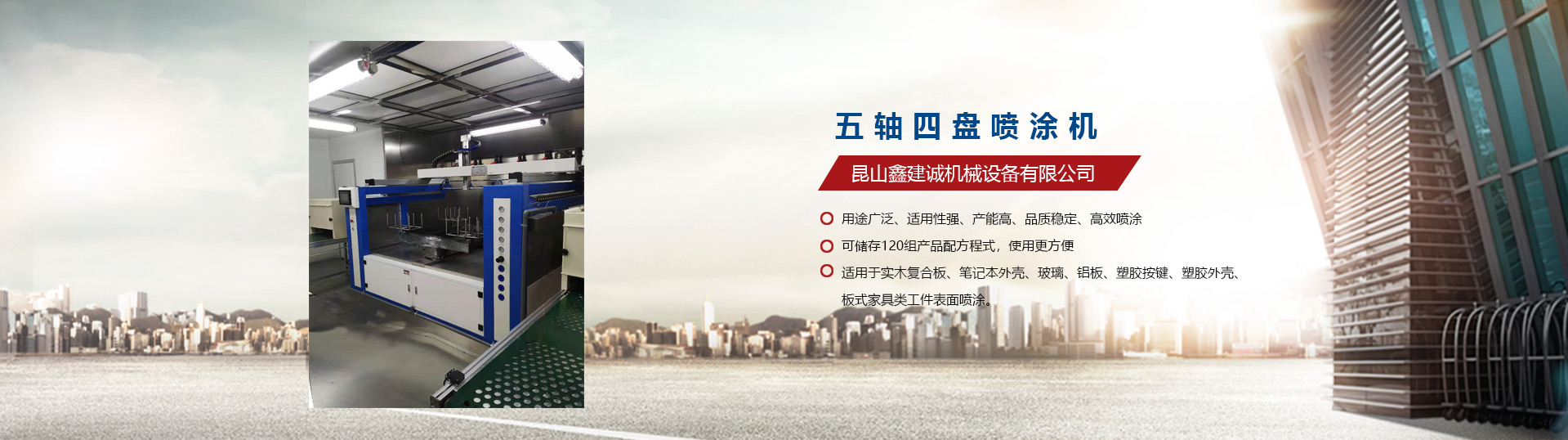 昆山鑫建誠機械設備有限公司自2009年涉足于自動噴漆機設備行業(yè),是一家專業(yè)生產噴涂自動化設備的生產廠家,先后推出了平面往復式自動噴漆機:單軸至五軸自動噴漆機、立式往復升降機等。陸續(xù)推出了六軸/七軸/八軸/九軸往復機等自動噴漆機專用機械手,應用到具有弧型且表面復雜的產品噴涂,昆山鑫建誠機械設備有限公司推出的往復機廣泛應用于塑膠、五金、木器、裝飾建材、汽車摩托車配件等領域。我們秉承“專業(yè),專注,誠信,互利”的原則,積極引入臺灣技術,充分發(fā)揮公司多位高級機械結構工程師、自動化工程師以及自動噴漆機系統(tǒng)工程